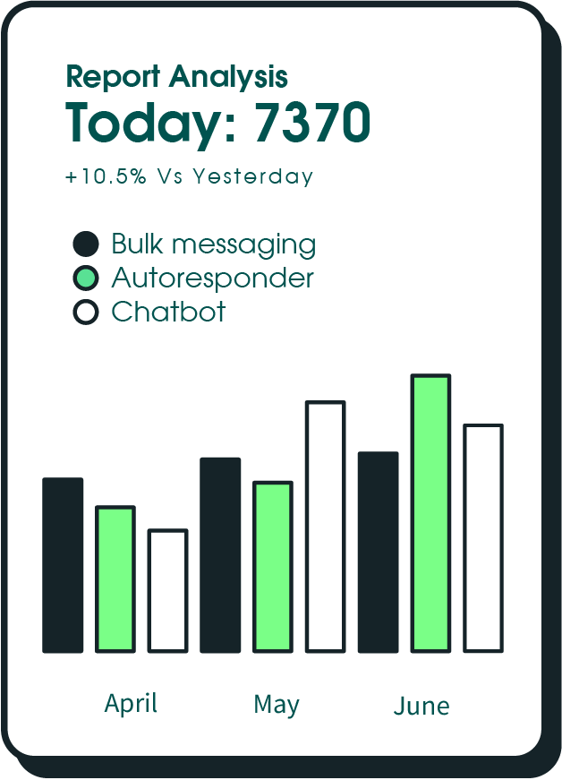 استفد من إمكانيات منصة التسويق عبر الواتساب الأكثر سهولة في العالم، حيث نوفر ميزات متقدمة مثل الإرسال الجماعي عبر الواتساب ودعم الشات بوت والرد الآلي، بالإضافة إلى العديد من المزايا الأخرى الرائعة!